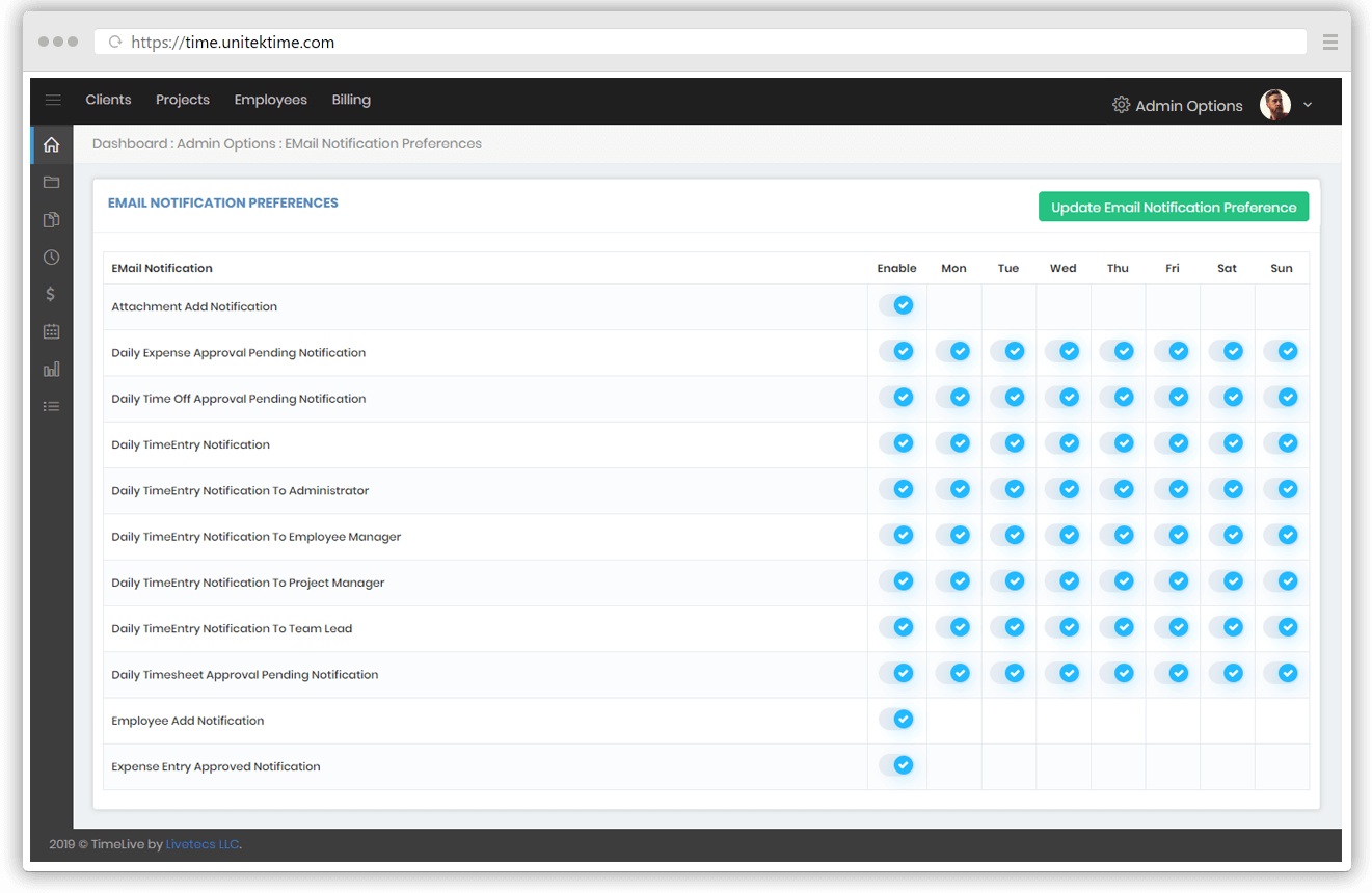 Timesheet tracker software notifies you regarding updates through e-mail so you are aware of all the innovations that we workout for you.